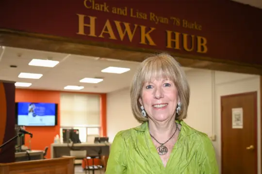 Dedicated in 2023, the Clark and Lisa Ryan ’78 Burke Hawk Hub honors the extraordinary philanthropy of university trustee, Lisa Ryan ’78 Burke, and her later husband, Clark. The Burkes’ generosity has contributed significantly to scholarships, academic departments and transformative student experiences.