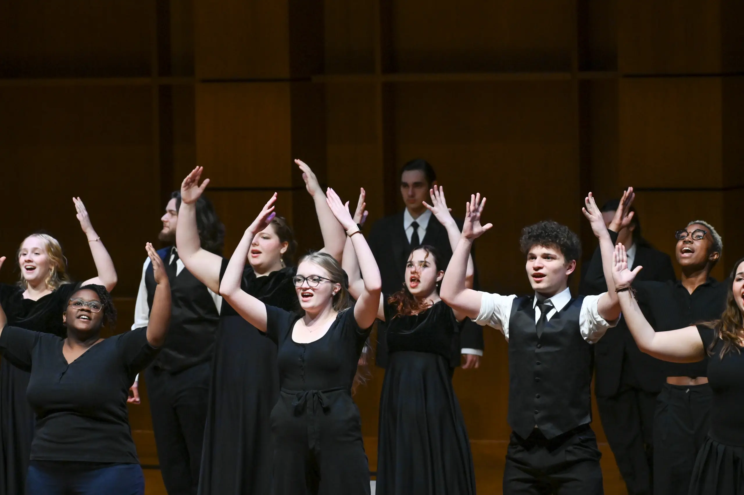 The highly select University Chamber Singers are chosen from members of the University Choir.